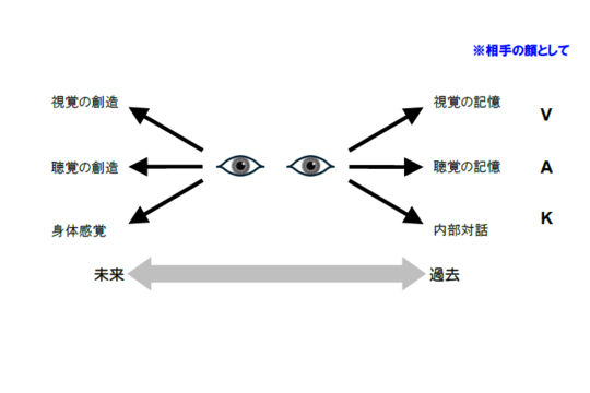 その人が、その瞬間に、どの種類の五感情報を探っているかを、眼の動きから判別するやり方。
